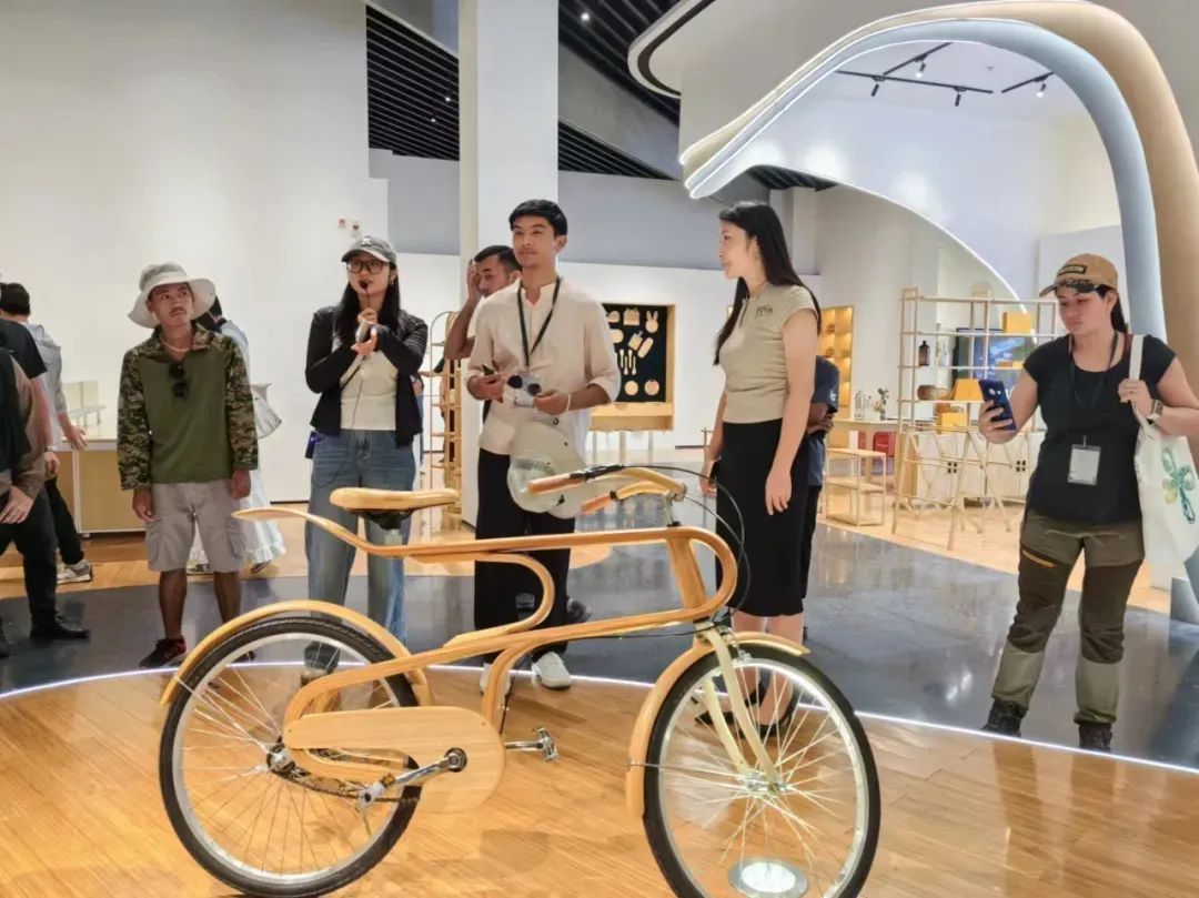 共建“一帶一路”國家“以竹代塑”科技創(chuàng)新研修班學(xué)員在邵武“竹立方”生態(tài)科創(chuàng)館欣賞竹制自行車。(受訪者供圖) 今年5月,來自老撾、所羅門群島、加蓬等發(fā)展中國家的竹藤領(lǐng)域官員及技術(shù)人員,走進(jìn)第二屆中國(武夷山)竹業(yè)博覽會與南平竹企,被中國竹制品的技藝、科技與創(chuàng)意深深震撼。 “中國把竹資源利用做到了極致!在這里,我看到竹子不僅能做烹飪廚具,還能造房子、做家具?!彼_門群島林業(yè)專員朱莉婭·塔古福奧阿·艾馬埃亞感慨。她計(jì)劃帶一張竹制桌子回國,向國人展示竹子的無限可能。 在邵武“竹立方”生態(tài)科創(chuàng)館,學(xué)員們紛紛試騎竹制自行車;在武夷山竹刻藝術(shù)館,他們被精美的竹雕技藝折服;在建陽豐產(chǎn)竹林示范片,他們深入了解竹林培育技術(shù),筆記本上記得密密麻麻…… “感謝中國發(fā)起‘以竹代塑’倡議!”加蓬旅游部官員儒勒·塞薩爾·阿塞萊·勒庫萊齊亞伊表示,“在中國的帶動下,加蓬也逐漸開始用竹子來替代塑料等材料。在南平,我親眼看到竹子構(gòu)筑的美麗空間,這讓我堅(jiān)信,綠色發(fā)展是全人類的共同選擇?!?/span>